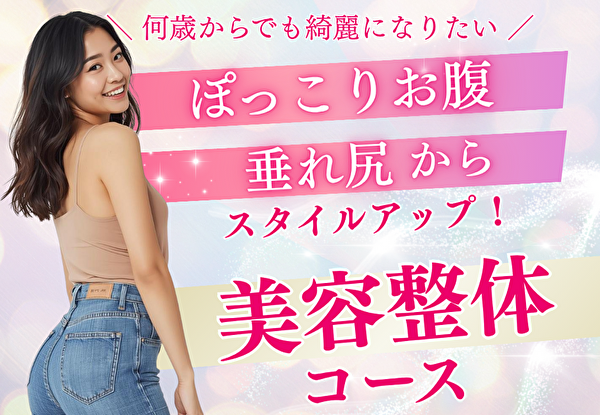 美容整体とはお尻を小さくして、姿勢を整えバストアップ、下腹ぽっこりを綺麗にする整体施術です。