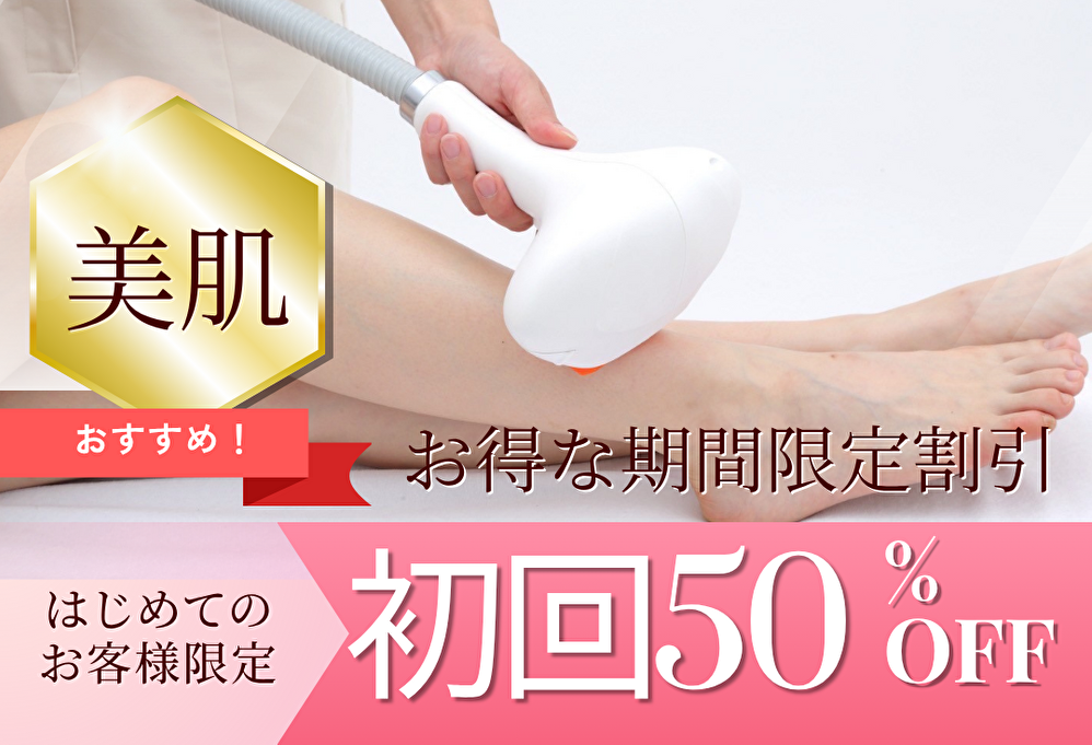 脱毛キャンペーン中は、初回は各部位50%引きにて受けられます。
